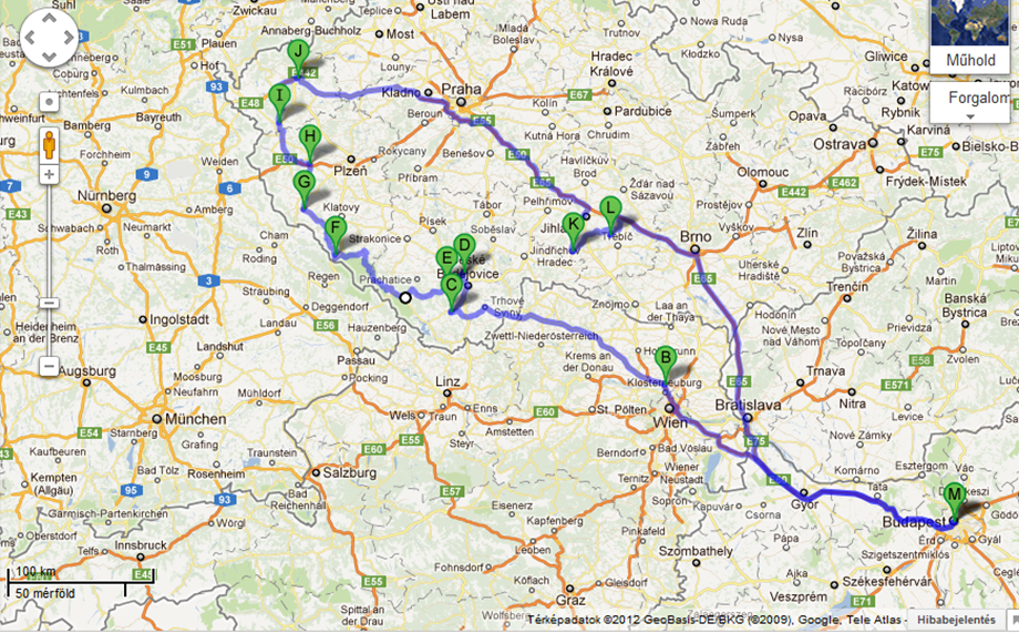 vízben álló várat. Aki látta a Névtelen vár c. (Jókai regény alapján készült) magyar filmet, annak rögtön ismerős lesz ez a tó közepén álló, tündéri kis kastély, ugyanis itt forgatták a filmet. Innen a csehországi autópályát használva jutunk el a magyar határhoz, ahol felmegyünk az M1-re és várhatóan este érkezünk Bp-re.